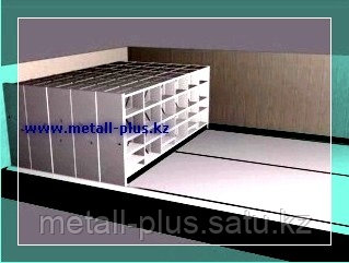 Монтаж передвижных архивных стеллажей на близко расположенные параллельные металлические рельсы, а также небольшой вес конструкции и равномерное распределение нагрузки на пол дают возможность их установки в помещениях с обычными, не укрепленными, перекрытиями между этажами.